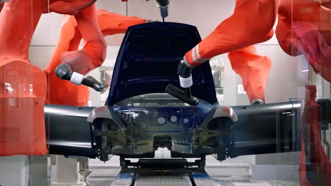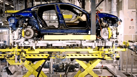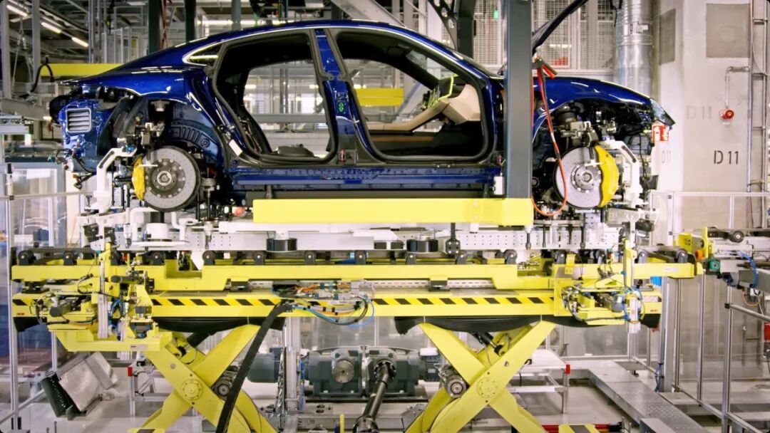 接着镜头来到了一组现代汽车的总装线上,仔细一看原来是一台保时捷Taycan。