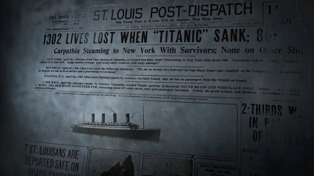 1912年4月14日,当时世界上最大的游轮——泰坦尼克号与冰山相撞后不久沉没,成为和平时期死伤数最为惨重的海难。