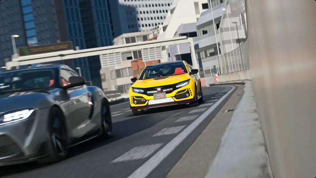日本首都高上,GR Supra超越了CIVIC Type-R。
