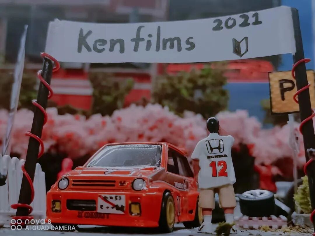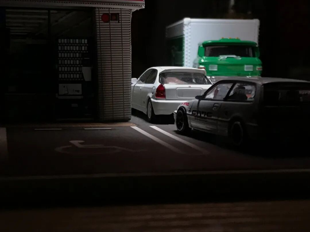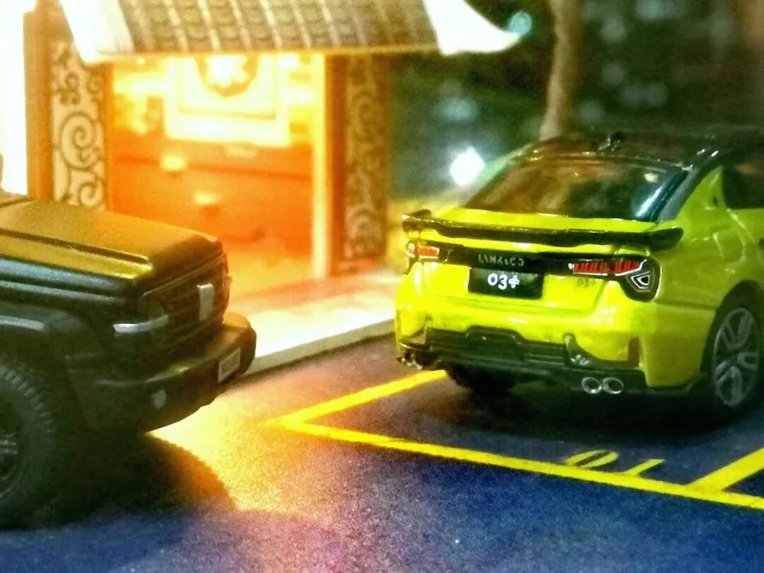 不仅有手办搭配,作者还有心地给他加上了车灯特效!