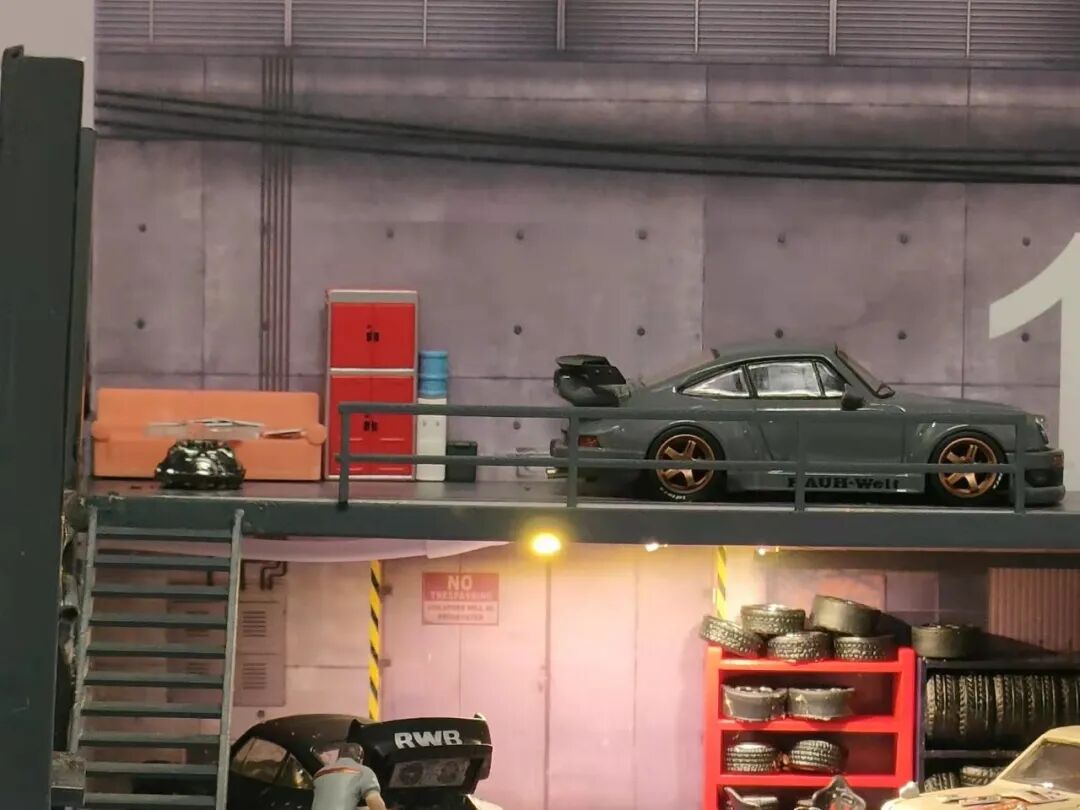 这个改装厂的场景做的十分仿真,不仅仅有配件,底盘也贴的非常有代入感!