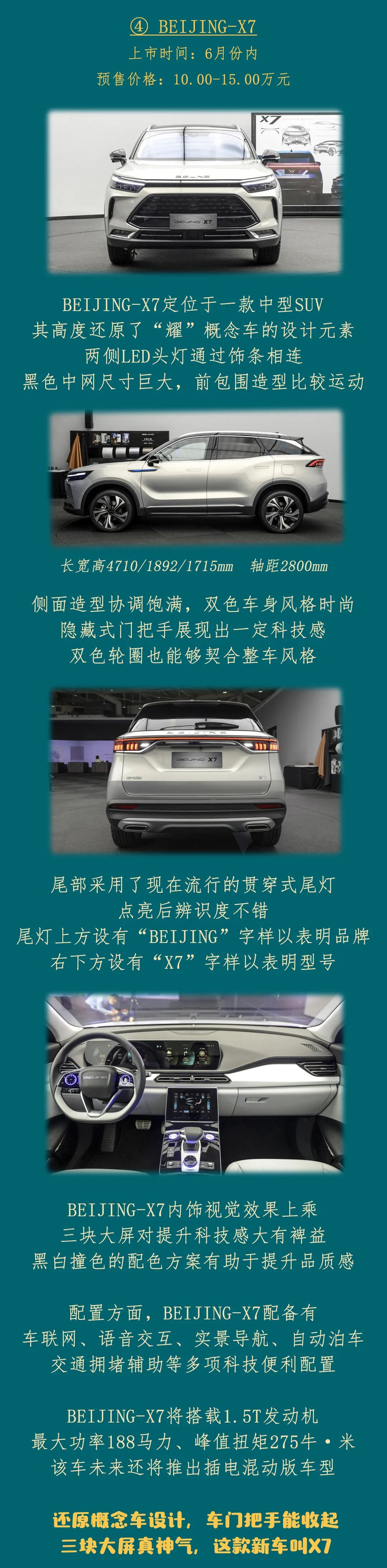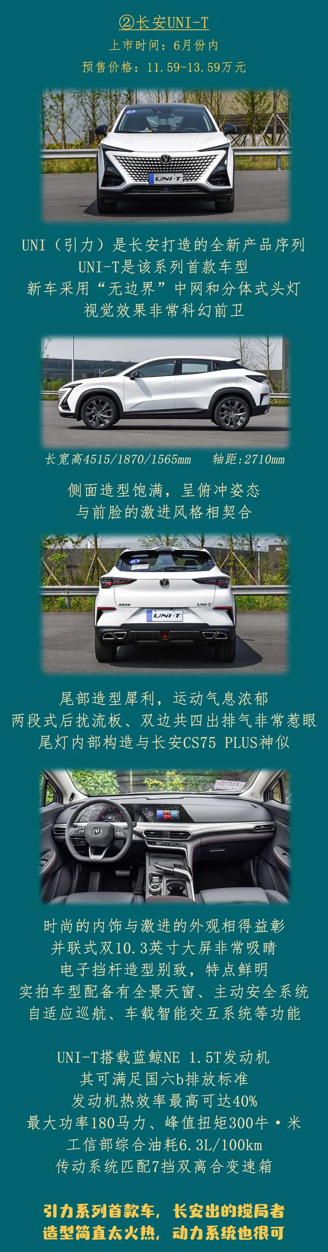 即将在6月上市的新款SUV之中,中国品牌产品占据了多数席位。通过这几款车型我们可以看到中国车企已经取得了长足的进步,产品设计协调且原创度高,提供的配置依旧丰富,而且在动力层面也出现了蓝鲸NE系列发动机等优秀产品。最后希望中国汽车企业不忘初心,继续给消费者带来出色的产品。