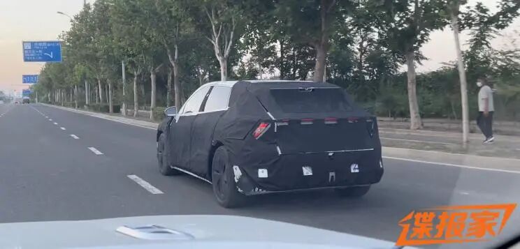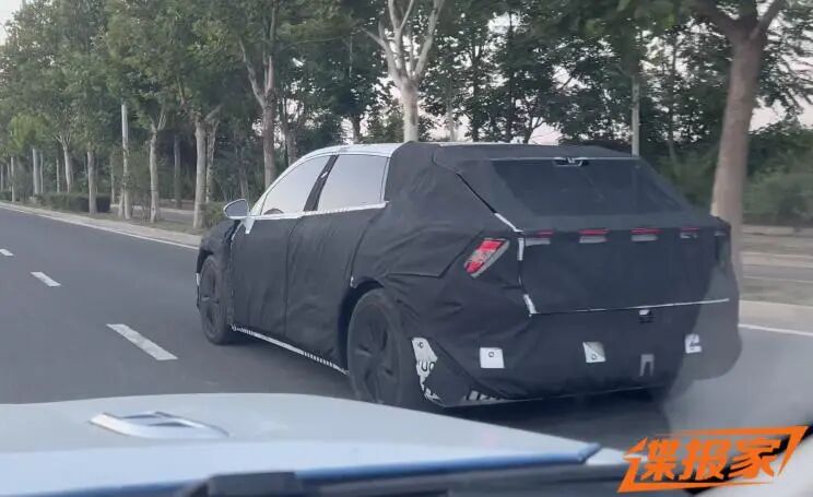 车尾部分,测试车保留了概念车上的溜背造型设计,包括后挡风玻璃上的分段式扰流板和后像素灯,以及一条若隐若现的贯穿式尾灯带。后备箱位置有明显的大开口造型,但暂时不清楚空间如何。