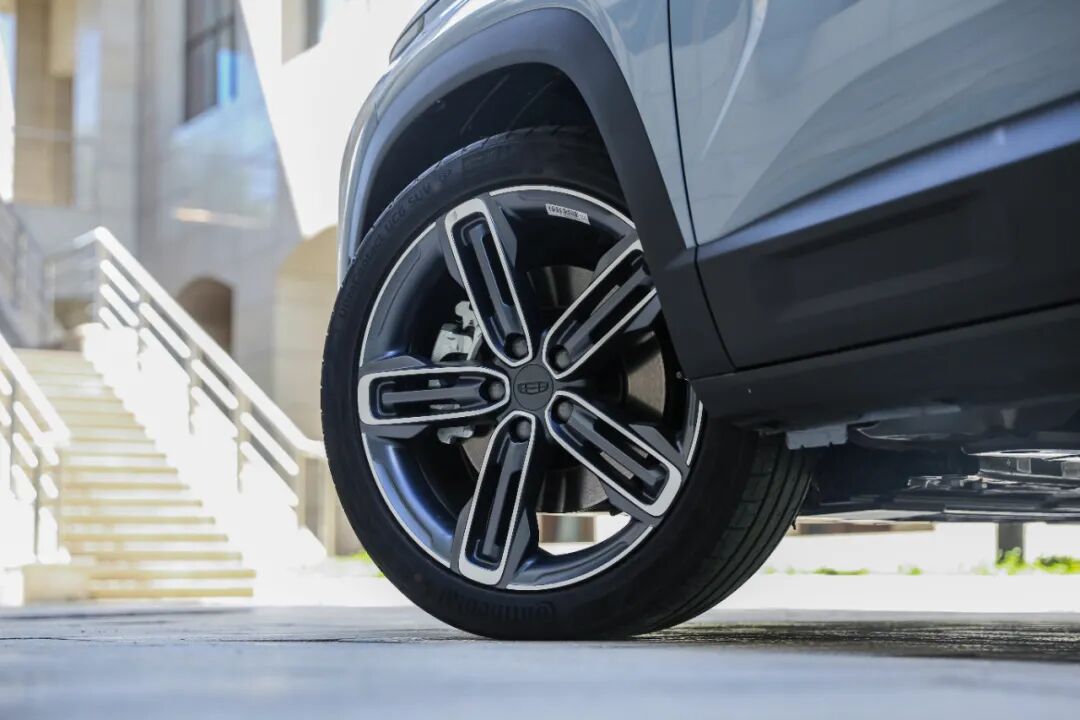 五辐式造型的轮圈与车辆整体设计风格保持一致,圆润的同时不乏运动感,同时,试驾车型配备的是一套马牌UltraContact UC6 SUV轮胎。