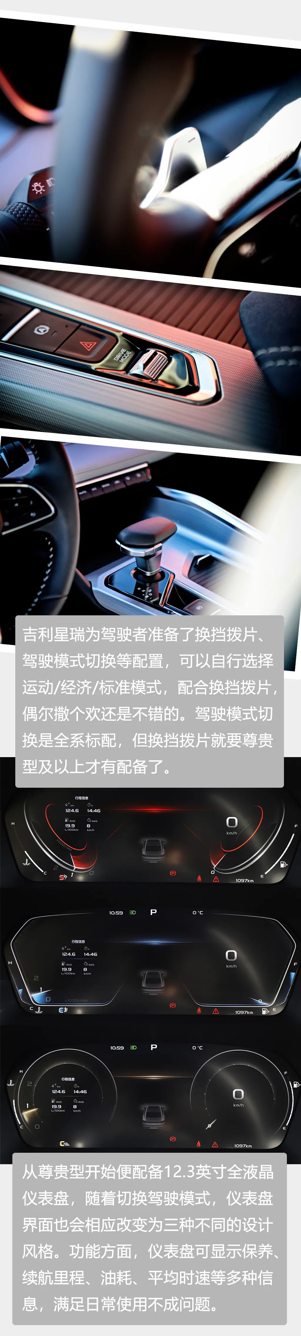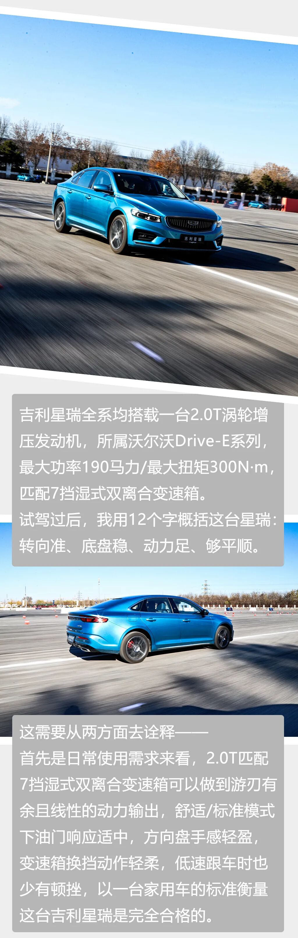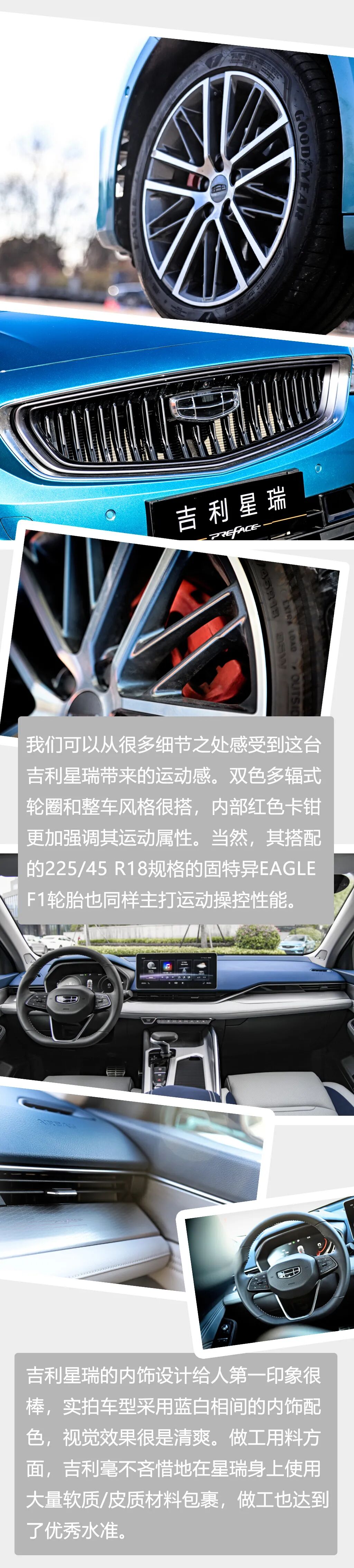 我们从这台星瑞身上看到了吉利的进步,早年间的吉利车型普遍人机工程学做得不好,坐进车内不太容易找到合适的坐姿;内饰做工一般、动力总成匹配不成熟……而今天,当我开上这台吉利星瑞,真的会被它的人机工程学、做工、动力总成匹配等方面打动。