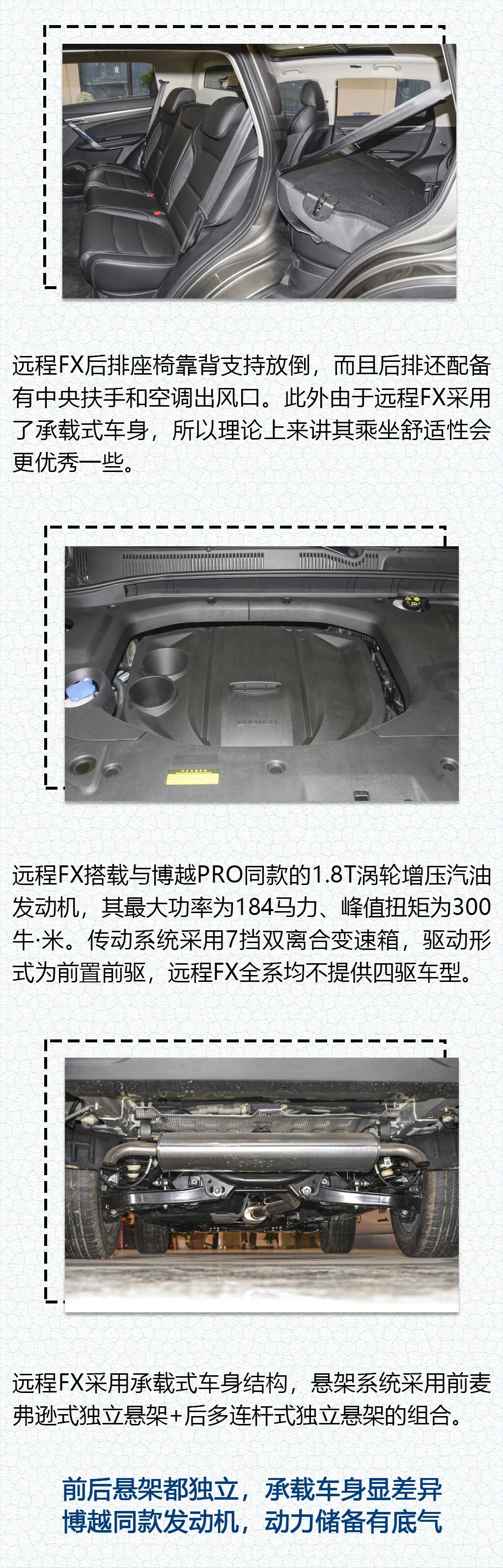 远程FX其实可以说是以博越PRO为基础增加货厢打造而来,偏乘用化的远程FX内饰质感不错,而且承载式车身和前后独立悬架在一定程度也能提升乘坐舒适性,不过采用承载车身在一定程度会影响载重能力。