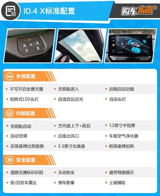 综合来看,上汽大众ID.4入门版车型配置较为齐全,可以说诚意满满,不过,作为一款家用定位的车型,入门车型在舒适性以及安全性方面的配置还有所欠缺,因此不做优先推荐。