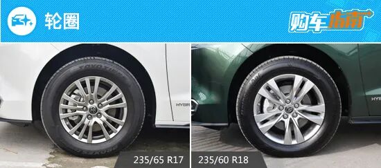 赛那SIENNA全系提供两种规格的轮圈,设计风格差异不大,其中低配车型采用17英寸高光铝合金轮圈,造型时尚精致,配套通伊欧PROXES Comfort系列轮胎,规格为235/65 R17;而高配车型则采用18英寸高光铝合金轮圈,造型更加运动,配套普利司通ALENZA傲然者系列轮胎,规格为235/60 R18。