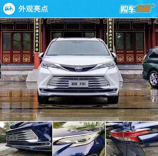 赛那SIENNA定位为中大型MPV,基于丰田TNGA-K平台打造而来。外观在延续海外版车型设计的基础上,针对前大灯和格栅进行了调整。其中,前大灯内部设计较为复杂,配备了透镜以及造型夸张的装饰元素,辨识度极高。进气格栅几乎占据了车头一半的面积,采用横向镀铬饰条装饰,相比海外版车型的黑色高亮材质显得更加高档。