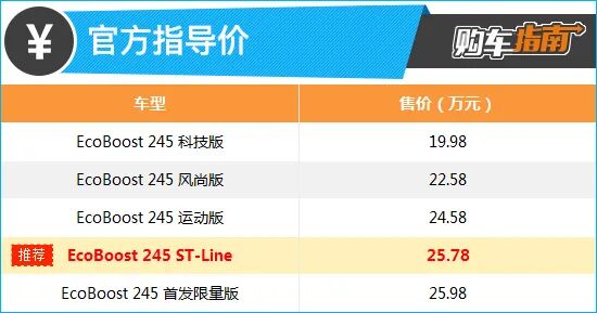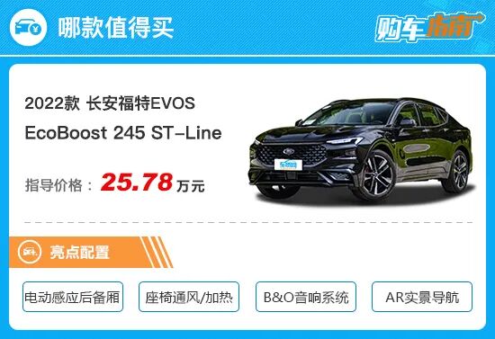 既然风尚版表现如此出色,为什么不推荐呢?主要是因为价格。长安福特EVOS的整体售价区间并不算便宜,风尚版售价达到了22.58万元,虽然配置与同级别车型相比更高,但价格也水涨船高,性价比稍打折扣。同时,既然预算上升到25万元左右,又是一款运动感极强的车型,那么个性化以及新颖体验就成为了不得不面对的新需求。从这方面来看,风尚版似乎还差点意思,连最基础的座椅加热功能都没有,就有些说不过去。而配备该功能的车型最低也要到ST-Line版本才出现,同时该版本车型还配备了座椅通风、B&O音响、电动感应式尾门以及AR实景导航等功能,虽然贵了些,但对于所增加的配置还是能“值回票价”的,而且购买这个价位车型的消费者对于通过加钱上高配来换取高阶体验这件事并不是很排斥。