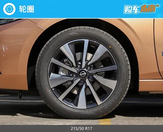 轮圈方面,新车全系均采用双五辐铝合金轮毂,视觉效果颇为时尚,实拍车型轮胎搭配的是邓禄普ENASAVE EC300+系列,主打节能环保,兼顾湿地性能,具体规格为215/50 R17。
