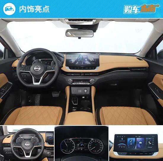 车身侧面和尾部最大亮点在于采用了双色车身设计,视觉效果的确要比燃油版单一颜色时尚许多。此外,前车门下方标有“e-POWER”标识,以表身份不同;尾部左下角还标有“300”标识,代表电机输出达到300牛·米。