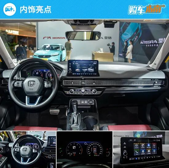内饰采用对称式设计,整体布局比较简约,贯穿式空调出风口极具辨识度,只不过这份个性与前卫,对于有“强迫症”和“密集恐惧症”的朋友来说,着实不算友好。方向盘样式比较简单规整,并没有很刻意地营造运动感。全系标配多功能方向盘确实好评,只是作为运动型轿车,没能配备换挡拨片多少有些令人遗憾。液晶仪表同样为全系标配,分为7英寸和10.2英寸两种,内嵌式设计能够有效避免反光情况,而且界面设计也十分简单清爽。同样的,9英寸悬浮式中控屏也没有任何“炫技”的味道,内置Honda Connect 3.0智导互联系统,支持手机互联、语音互联、车联网以及OTA升级等主流功能。此外,在屏幕左侧还配有实体按键及旋钮,日常操作十分便利。