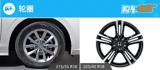 广汽本田型格根据车型版本的不同,共提供三种尺寸轮圈可选,分别为16、17以及18英寸。其中,16英寸轮圈虽然也是由铝合金材质打造,但设计实在太过低调,而且尺寸也偏小,视觉效果非常普通。17英寸轮圈并未找到相关图片,但相信随着尺寸的提升,观感应该也会有所进步。毫无疑问,高配车型使用的18英寸切削轮圈颜值最高,双五辐造型搭配熏黑撞色设计,营造出极强的运动感。