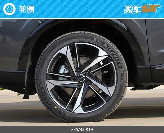 2022款荣威RX5 MAX全系车型轮圈尺寸及样式均保持一致,为235/45 R19。双五辐刀锋造型搭配撞色设计,视觉冲击力极强,甚至有些不像是SUV车型应有的气场,整体感觉十分运动。激进的轮圈样式配合整车个性前卫的设计语言,对于年轻消费者来说极具吸引力。
