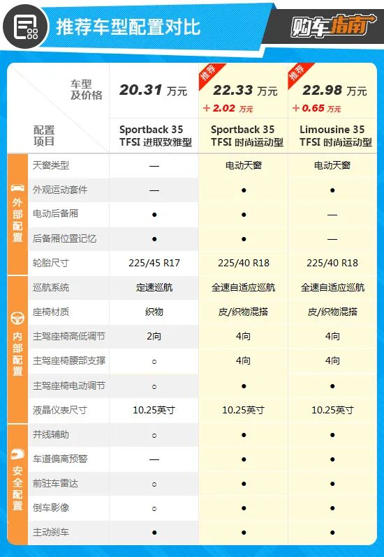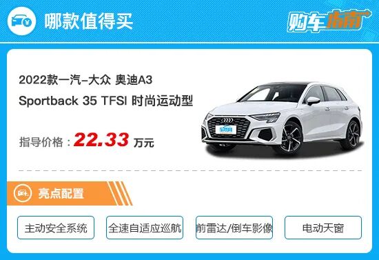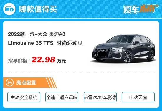 所以综合来看,2022款一汽-大众奥迪A3 时尚型性价比较高,且运动版自带的S-LINE套件比致雅版看起来更有运动感,也更符合A3的车型定位。至于两厢的Sportback和三厢的Limousine选择哪个,根据自身喜好或者实际用车需求选择即可,无需过多纠结。