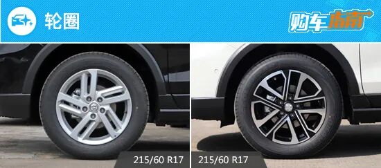 2022款启辰T60全系标配17英寸铝合金轮圈,分为两种造型,中低配三款车型采用常规双五辐设计,精质感不错;顶配车型采用双色哑光质地,造型更加动感。轮胎方面则提供了邓禄普和优科豪马两种选择,主打节能舒适,轮胎规格统一为215/60 R17。