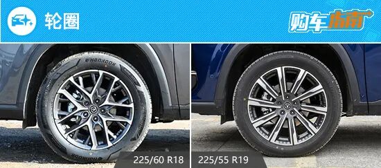 轮圈方面,1.5T车型全部采用18英寸轮圈,轮胎则是采用韩泰Ventus S1evo3 SUV系列,尺寸为225/60 R18。2.0T车型采用19英寸轮圈,轮胎采用邓禄普系列产品,尺寸为225/55 R19。