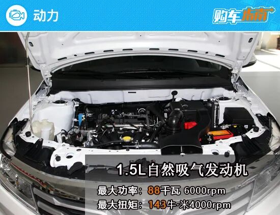 动力方面,新车搭载1.5L四缸发动机,最大功率88千瓦、最大扭矩143牛·米,传动系统匹配5速手动和CVT无级变速两种变速箱,均满足国六排放标准。底盘方面,新车全系标配前麦弗逊独立悬架、后多连杆独立悬架。