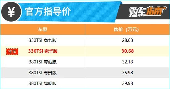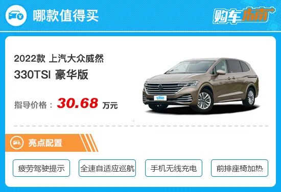 2022款上汽大众威然共推出5款车型,售价区间为28.68-39.98万元,相比老款新增了一款380TSI尊驰版。入门版330TSI商务版价格不变的情况下配置有所提升,可以说是加量不加价。那么这5款车型该如何选择?哪款性价比最高呢?今天我们就从购车指南的角度,来看看2022款威然如何选购。