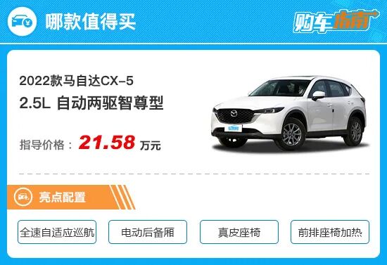 至于2.5L顶配车型,售价在推荐车型的基础上又增加了2.1万元,配置提升幅度却比较有限,主要配备了适时四驱系统,并且增加了360度全景影像和HUD抬头显示,而这两项功能推荐车型也可以选装,为非必要性配置。因此,综合价格、动力以及实用性配置等因素来看,售价适中且动力和配置更占优势的2.5L 自动两驱智尊型性价比突出,在购买2022款马自达CX-5时可优先考虑。