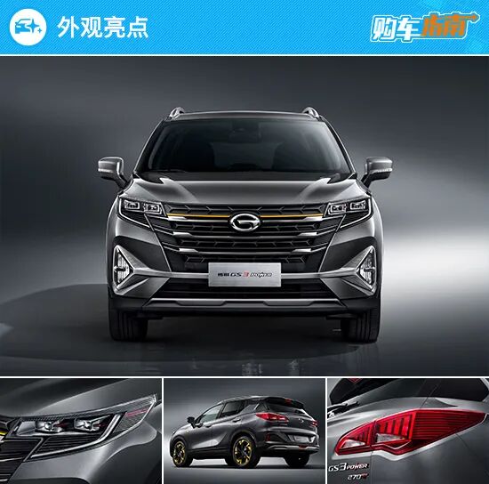 车尾部分变化不大,简洁饱满的整体造型搭配顶部“小鸭尾”设计,颇为时尚。细节方面,新车针对尾标进行调整,取消了LOGO下方的“Trumpchi”英文标识,同时在右下方“GS3”车型名称后方增加了“POWER”字样。此外,新车具体长宽高分别为4350mm×1825mm×1685mm,轴距为2560mm。