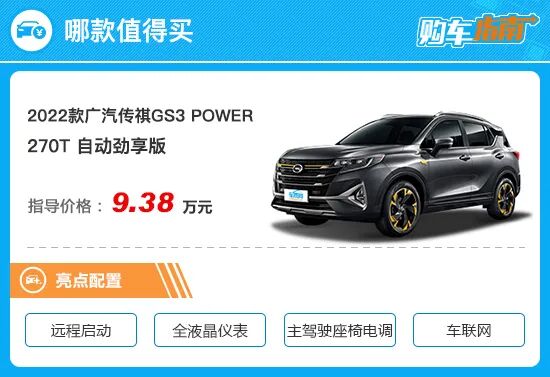 综合来看,2022款广汽传祺GS3 POWER 270T自动劲享版车型性价比更高,且全系独占华为HiCar手机互联功能,对于使用华为手机的用户来说可谓是福音,购车时可优先考虑。