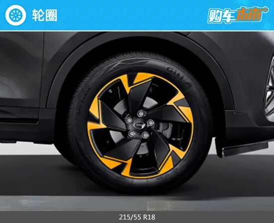 2022款广汽传祺GS3 POWER提供了两种尺寸轮圈可供选择,其中手动挡和自动挡最低配车型均为17英寸,匹配215/60 R17型号轮胎;其余车型则均为五辐式双色18英寸轮圈,匹配型号为215/55 R18的佳通轮胎。