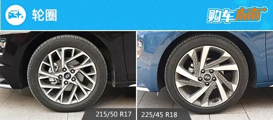 轮胎方面,全新名图提供两种轮圈样式,其中,17英寸轮圈采用花瓣式设计,而灵动双色铝合金轮毂尺寸为18英寸,具体规格分别为215/50 R17和225/45 R18。