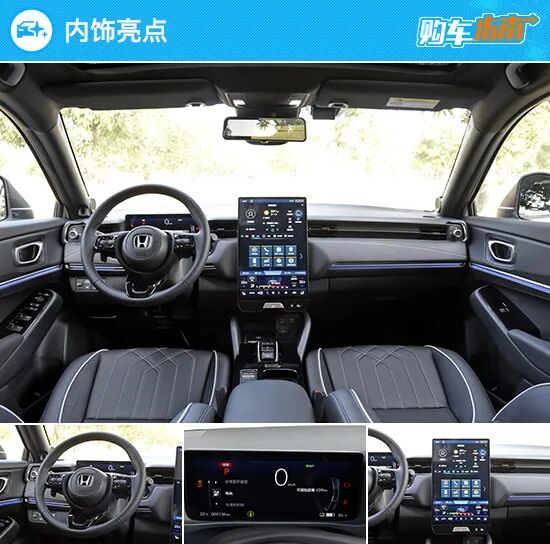 内饰方面,新车采用了本田家族全新设计语言,其中仪表盘终于更换成10.25英寸的全液晶仪表盘,再配合上15.2英寸竖置中控屏,瞬间提升了车内科技感,且与本田燃油车型形成差异。此外,中控屏内部搭载了Honda CONNECT 3.0智导互联系统,提供AI语音助理、车家互联以及OTA升级等功能。
