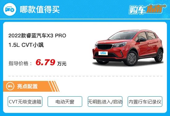 所以综合来看,2022款睿蓝汽车X3 PRO 1.5L CVT小飒版本性价比更高,购车时可优先考虑。