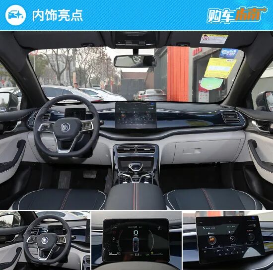 比亚迪秦PLUS的内饰设计依然有着鲜明的家族式设计元素,主打科技氛围,比如悬浮式的全液晶仪表、可电控旋转90°的大尺寸多媒体触控屏以及电子挡杆等配置,均能够带来十分新颖的用车体验。不过,中控台和饰板造型不再是秦Pro那种平直的风格,而是融入了大量柔性曲线线条,并辅以大面积皮质包裹以及高光黑色饰板,从而使内饰整体的时尚与高级感得到大幅提升。