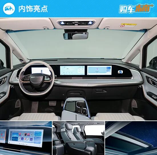 需要注意的是,入门的绿洲七座版并未配备三联屏,且蜘蛛智联交互系统除入门车型外,其余车型均有搭载。在内部配置上,除绿洲七座版以及草原七座版外,其余车型第二排座椅均配有座椅加热、通风以及按摩功能。同时在娱乐方面,新车还配有JBL音响系统。