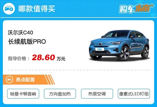 对比顶配车型四驱高性能版PRO,长续航版PRO也仅仅在在动力性能上有差距,两者的配置体验几乎一致。说实话,四驱高性能版PRO4.7秒的百公里加速能力,日常也很难有场景充分发挥,而且更高的电耗、更重的车身也带来了续航的缩水。如果对零百加速没有特别的需求,我觉得完全可以省下这4.2万元的差价,从而选择价格对应配置更加实惠,更具性价比的长续航版PRO车型。综上,沃尔沃C40 长续航版PRO是车质网最推荐给您的选择,购车时可以优先考虑。