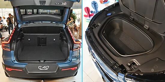 后备厢开口大且内部规整,储物能力有保证,后排座椅支持4/6比例放倒,也能满足日常搬家载物,运输大件物品的需求。对于在SUV上能明显提升便利度的电动尾门,C40是全系标配,并且还支持“脚踢”感应开启。储物方面较为有惊喜之处就是C40还留有容积不小(31升)的前备厢,与外界隔绝性强的特点也适合放一些充电线缆,随车工具等等。