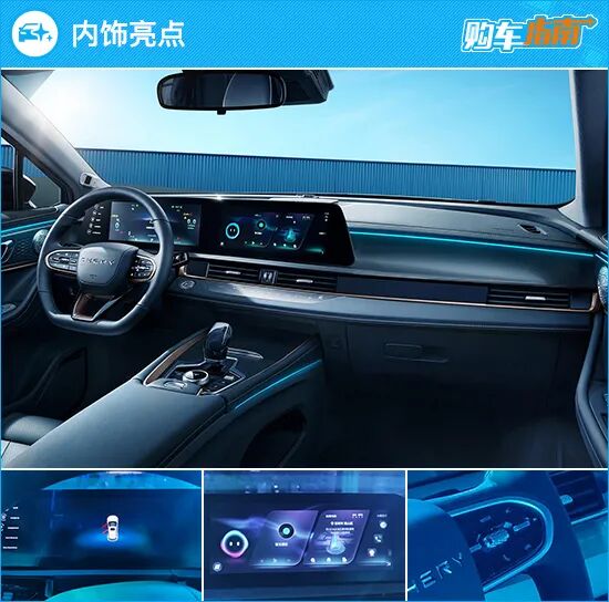 车辆内饰造型简洁时尚,平直的中控台内部配有黑色的饰条,并且还与空调出风口融为一体,增加了内部层次感。此外,车辆内部还采用众多软质材料包裹,档次感十足。双12.3英寸连体屏幕显示清晰,其中12.3英寸中控屏内部配备了Lion 5.0雄狮智云系统,可支持导航、语音交互、OTA升级、手势控制以及手机互联等功能。需要注意的是,1.5T车型均为双10.25英寸连体屏幕。在配置方面,推荐车型还支持前排手机无线充电、方向盘加热、座椅通风加热、道路救援呼叫、SONY索尼音响以及自动空调等功能。