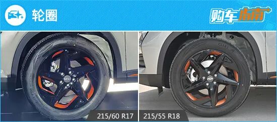 轮胎方面,新车根据配置的不同,提供了两种规格可选,其中1.5T车型的轮胎规格为215/60 R17,1.6T车型的轮胎规格为215/55 R18。