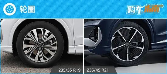 轮胎方面,奥迪Q4 e-tron顶配车型采用Audi Sport运动轮圈,其余车型则采用双五辐式轮圈,个人觉得两款轮圈样式都比较时尚。尺寸方面,新车提供19英寸、20英寸以及21英寸三种规格。值得一提的是,全系车型后轮胎比前轮胎更宽、扁平比更小。