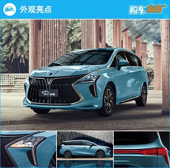 外形设计方面,风行游艇明显走的是和传统“板正”造型的MPV不一样的路线,甚至可以用新鲜感十足来形容。线条流畅且棱角分明的车头格外吸睛,巨大尺寸的前格栅以及两侧不规则造型的前灯组融合到一起,有设计师手稿上概念车的那味儿了,车尾也采用当下流行的贯穿式灯组。风行游艇整体车身姿态呈俯冲样式,非常彰显运动感。