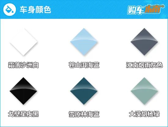 时尚当然需要色彩来彰显,风行游艇提供了苍山洱海蓝、大漠胡杨绿、戈壁星夜黑、江南烟雨灰色、霜落沙洲白、雪原林海蓝共6种车身配色供用户选择,配色命名很文艺,实际车漆效果也比较淡雅显档次。其中最推荐苍山洱海蓝,这也是风行游艇的主打色。