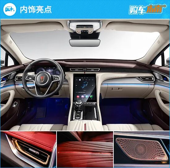 新车内饰基本延续了红旗品牌经典的家族式设计风格,将科技感与豪华感完美融合。对称式中控台看似普通,但是层次分明,再配合上恰到好处的氛围灯点缀,整体效果相当出色。配置部分,多功能方向盘、全液晶仪表、竖置中控屏以及电子换挡机构等,均非常符合时下的主流趋势,营造科技感的同时也充分照顾到了日常使用的便利性。