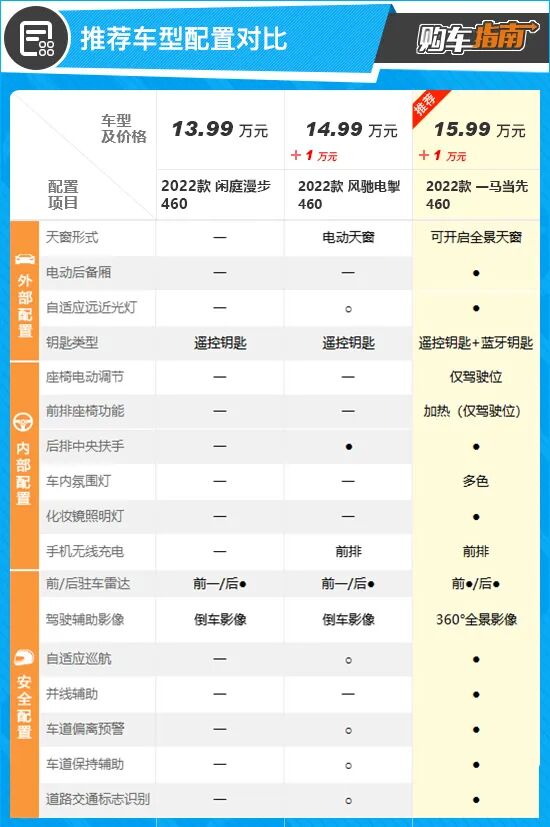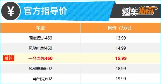 而相比之下,次低配的风驰电掣460版车型性价比就更低了,比入门车型多出的1万元差价只是增加了电动天窗、前机舱覆盖护板、后排座椅中央扶手等,对于实用性帮助微乎其微。因此,综上所述,一马当先460版车型性价比最高,购车时可以优先考虑。