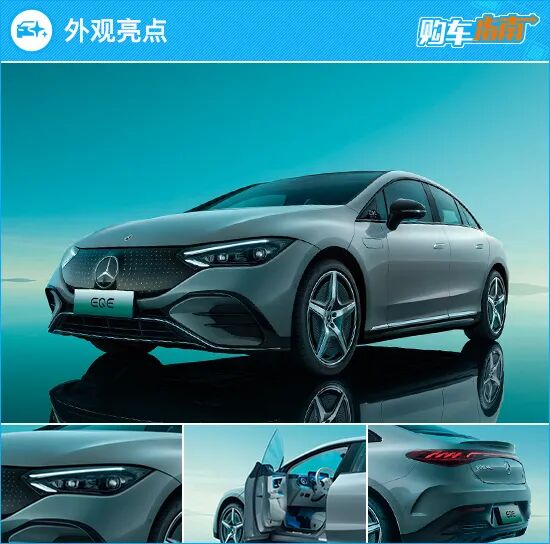 外观方面,新车延续了奔驰EQ家族式设计理念,采用全封闭式格栅与大灯组相融合的一体式造型,视觉效果圆润饱满,浑然天成。异形前大灯组内置两条LED日行灯带,点亮效果十分出色,搭配奔驰标志性的“三叉星辉”,极具辨识度。此外,奔驰EQE还配有造型犀利的前包围,其中,三段式散热开口设计让新车具备了很强的运动感。