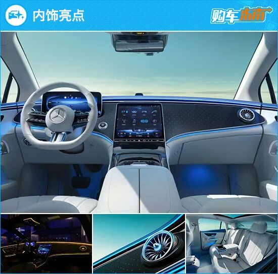 内饰部分,对称式中控台设计简约精致,豪华气息十分浓郁。此外,位于中控台处的贯穿式黑色饰板,也与前脸封闭式格栅造型有所呼应,设计一致性很强。配置方面,北京奔驰EQE全系标配12.3英寸全液晶仪表盘以及12.8英寸纵置布局悬浮式中控屏,不仅内置功能丰富,而且交互感受以及使用体验也都很出色,营造出了极强的科技感。