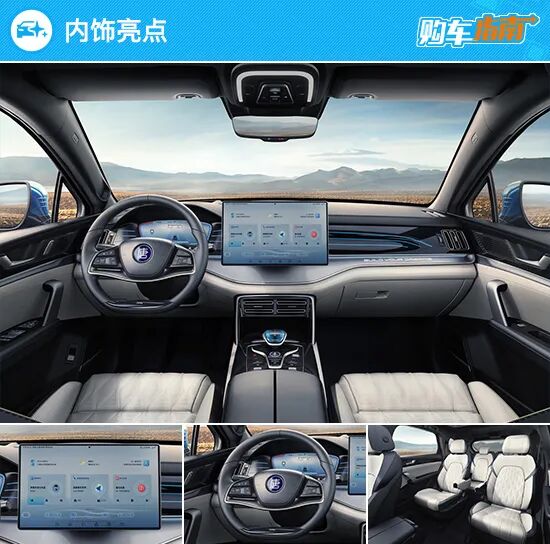 新车内饰采用了环抱式豪华智能旗舰座舱设计,全新苍穹灰配色与大量皮质材料相搭,彰显出不俗的质感。同时在配置方面,全液晶仪表盘、双辐式多功能方向盘、15.6英寸自适应旋转悬浮式中控屏以及W-HUD抬头显示功能均有所配备。车机内核为最新版本的DiLink 4.0(5G)智能网联系统,并配备了升级后的DiPilot智能驾驶辅助系统。此外,新车全系标配2+3+2七座座椅布局,中高配车型还可以选装第二排独立座椅的2+2+2六座座椅布局。