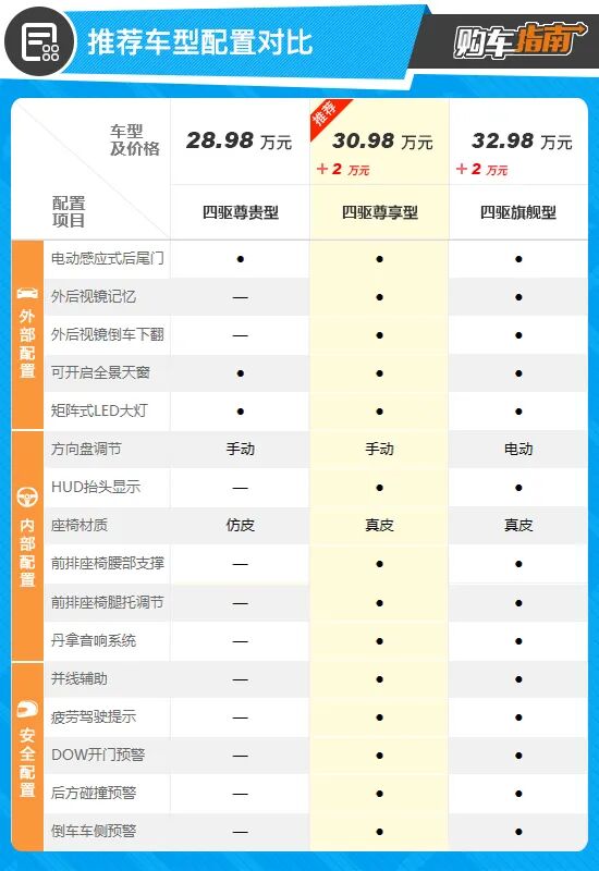 不过选装包的价格为1万元,加上入门的四驱尊贵型和推荐的四驱尊享型之间2万元的差价,仅为了获得2+2+2六座布局就要花费3万元看似有些不值,但其实除了两款车型之间的配置差异外,选装包中还包含了NAPPA真皮座椅、前排和第二排的座椅按摩功能、第二排座椅通风/加热/电调功能以及专属的苍穹灰专属内饰配色方案等,性价比得到显著提升。所以综合来看,2022款比亚迪唐DM-p 215km四驱尊享型搭配六座选装包的组合更值得推荐,购车时可优先考虑。