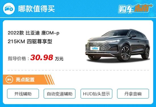 2022款比亚迪唐DM-p共推出3款车型,售价区间为28.98-32.98万元。新车搭载了1.5T发动机+双电机组合而成的插电式混合动力系统,官方给出的0-100km/h加速时间仅为4.3s,性能相当强悍。接下来我们就将针对车型间的配置差异,为您推荐哪款车型的性价比最高。
