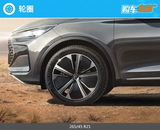 2022款比亚迪唐DM-i提供了两种尺寸的轮圈,其中入门版车型为20英寸,匹配的轮胎具体尺寸为255/50 R20。其余两款中高配车型则配备双色五辐式低风阻轮胎,轮胎的具体尺寸为265/45 R21。