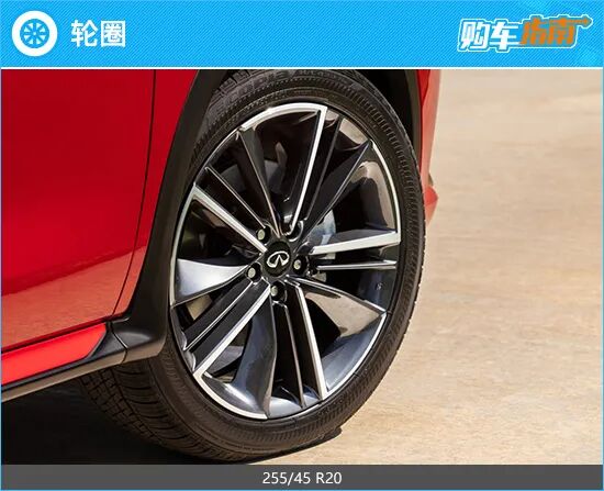 英菲尼迪QX55全系标配20英寸双色多辐铝合金轮圈,和车身所展现的运动感较为搭配,传统的卡钳颜色稍微有些素,个人认为如能采用红色卡钳,更能彰显独特性。英菲尼迪QX55均使用规格为255/45 R20的普利司通轮胎。