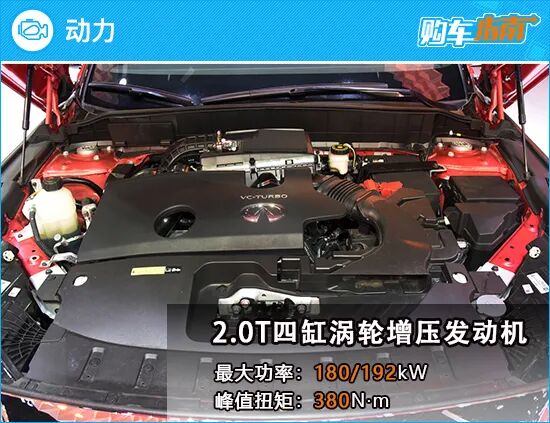 动力方面,英菲尼迪QX55全系搭载一台2.0T VC-TURBO 发动机,带有可变压缩比技术。除入门车型发动机最大功率为180kW,其余车型发动机最大功率均为192kW,在2.0T发动机中属于性能较为领先水平,传统系统方面,全系皆搭配一台CTV变速箱(模拟8速)。此外,英菲尼迪QX55在中高配车型上还搭载有适时四驱系统。